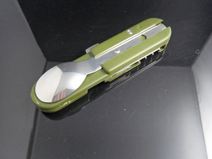 Очень крутой мультитул. Пришло именно то, что и хотел) Сделан достаточно качественно. Пластиковые элементы не воняют, нержавейка не ржавая) Ложка и вилка очень маленькие, но зато они есть, хоть и в компактном варианте. Ложка по размеру чуть меньше чайной, ну и вилка такая же не большая. Нож острый. Ну все в том же духе) Короче говоря, продавца рекомендую, товар однозначно стоит покупать. К тому же и посылка не так уж и долго. Чуть более, чем 3 недели.