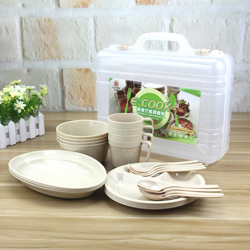 Plastic Tableware Set Portable Outdoor Camping Bowl Chopsticks