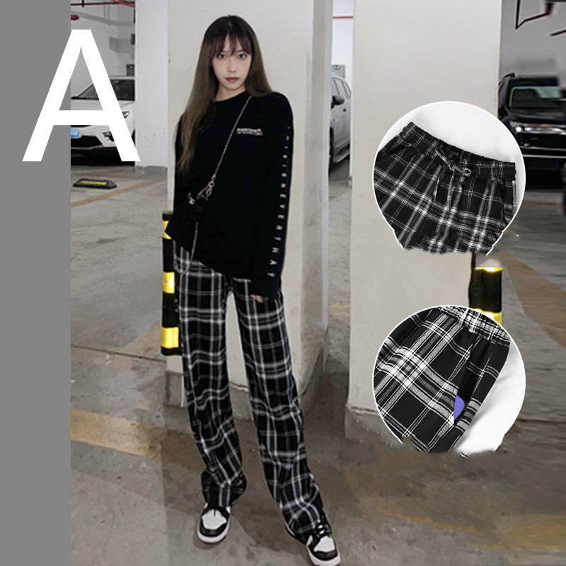 A: Spring and Autumn models-black and white plaid [lace elastic waist] with pockets,