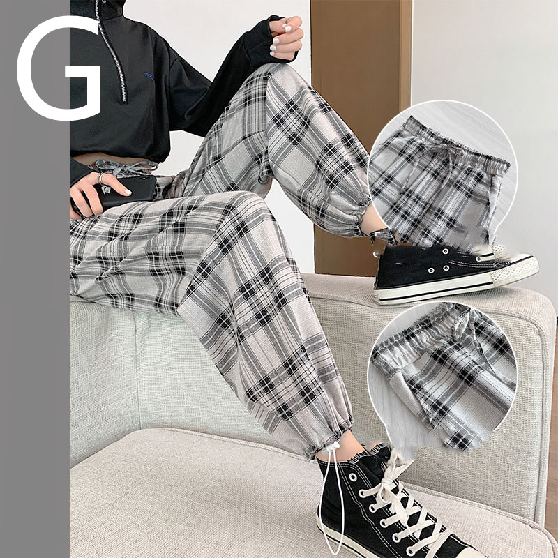 D: Spring and Autumn models-gray plaid [lace elastic waist] with pockets,
